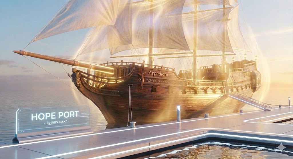 밤과 낮의 경계가 흐려진 시대, 사람들은 더 이상 바다만을 항해하지 않았다. 아르페디엠호는 이름조차 바람에 실려 온 전설처럼 전해졌다. 그 배는 쇠와 나무로 이루어진 배가 아니었고, 지도에도 표시되지 않는 항로를 따르는 존재였다.